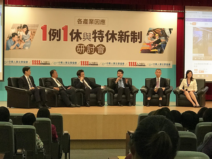 為協助各產業度過一例一休檢查期,1111人力銀行與中華人事主管協會於5月18日晚間在台北共同舉辦「1例1休與特休新制研討會」,邀請首都客運總經理李建文、台灣區織襪工業同業公會理事長魏平儀、陳律仰、李大華等代表各產業共同與會。在最後Q&A階段時,現場滿座學員提問熱烈、欲罷不能。中華人事主管協會執行長林由敏表示,各產業因應業務性質不同,導致人力不足、排班困難,企業整體經營成本上揚,衍生的爭議不斷。例如餐飲業的人資人員,就面臨人力調度、增聘兼職人力等許多實際操作的問題。